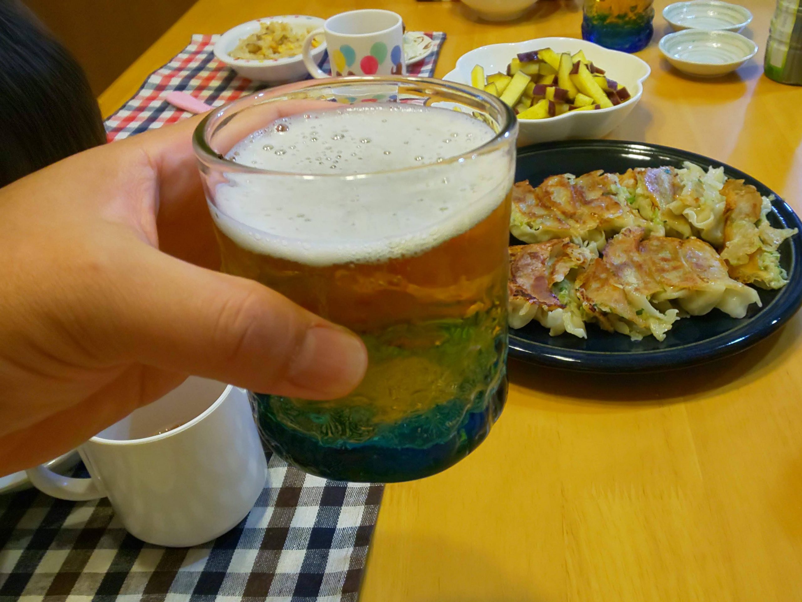 ビールと餃子のテッパンの組み合わせに舌鼓を打ち