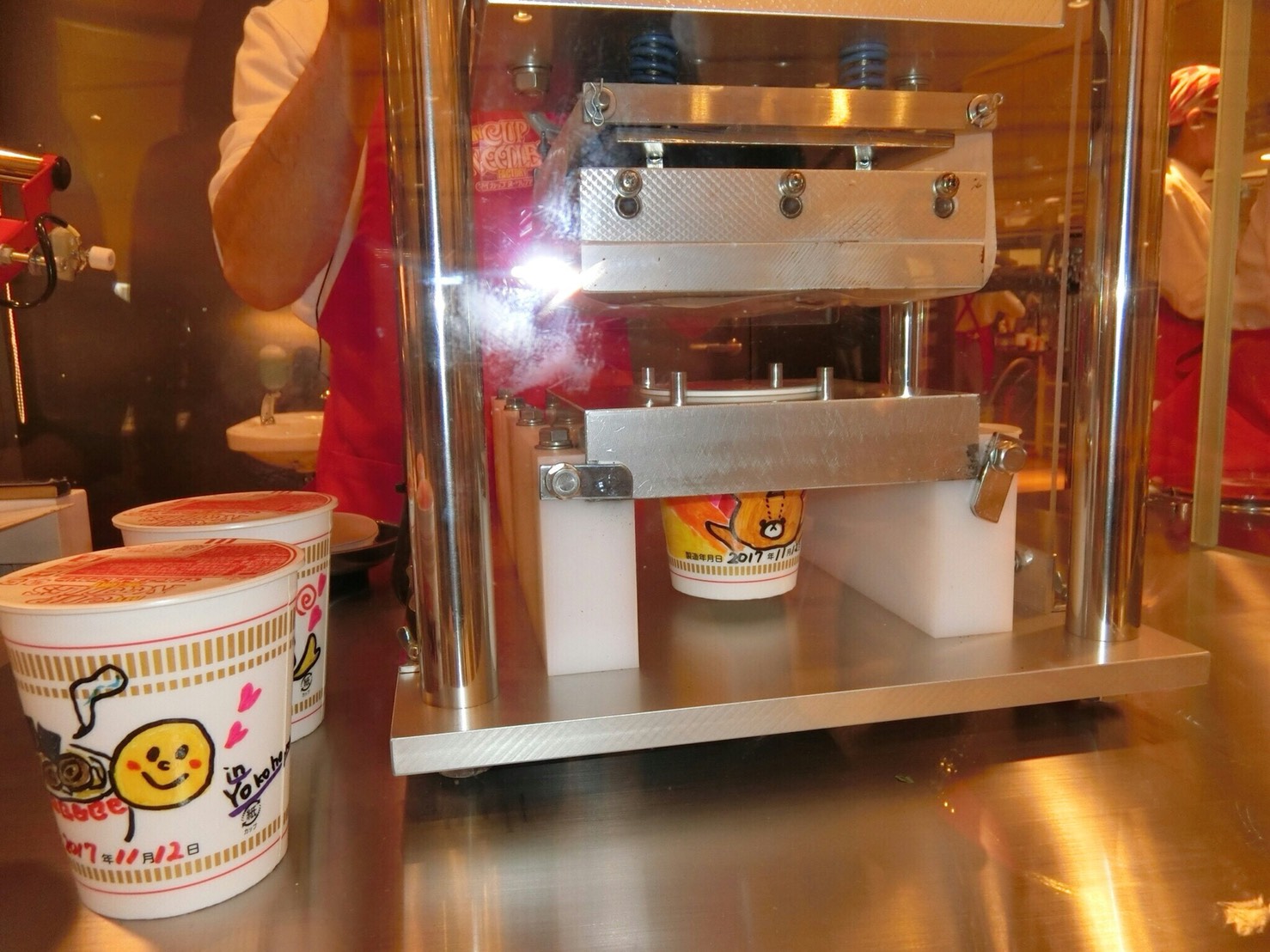 最後に持ち帰り用のケースに入れて、オリジナルカップヌードルが完成*。ヾ(。>v<。)ノ゙*。