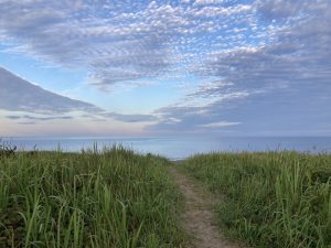 コーヒーを片手に防風林を抜けて朝焼けの海を眺めに♪