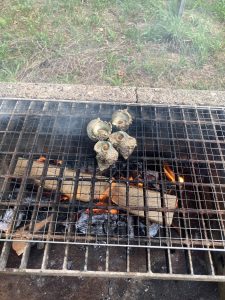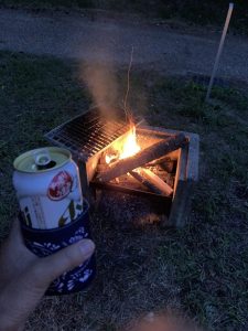 その後、鬼の形相で火起こしをして晩御飯の準備ならぬ、ビールのつまみを慌てて準備してましたw