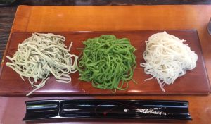 左から 田舎そば・茶そば・更科そばの三種類