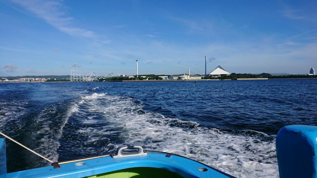 早速出航~ 八景島シーパラダイスの前を通りいざポイントへ!! 多くの釣り船が競争するように海を走ります。