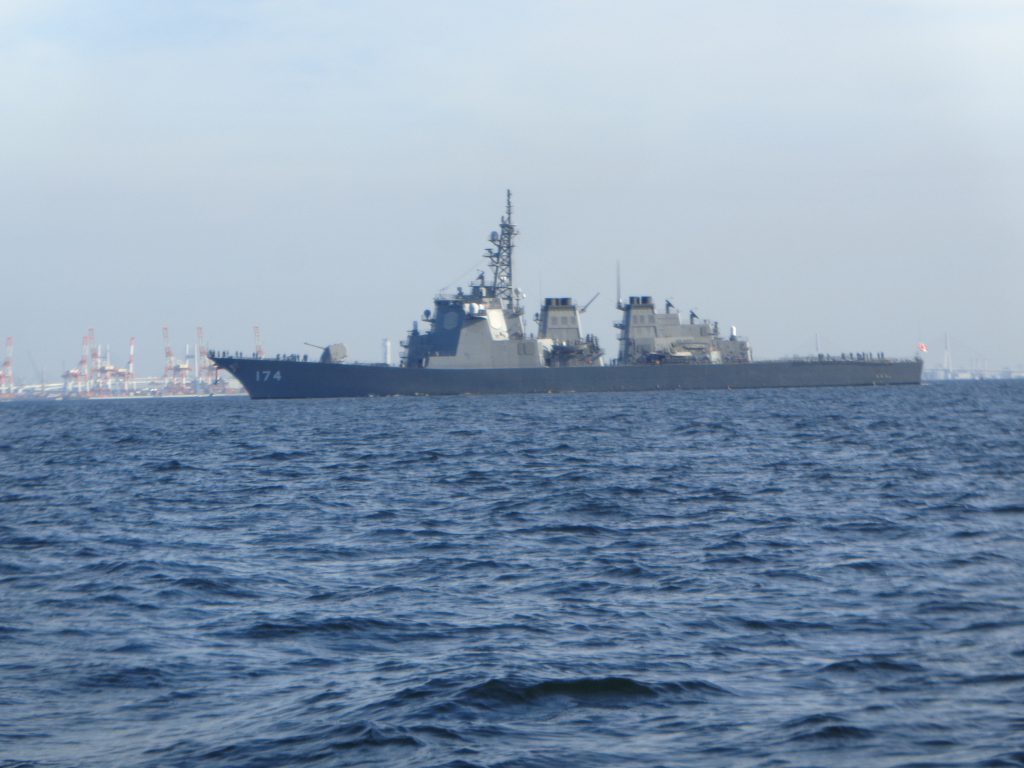 また、横須賀近くなので… 自衛隊のイージス艦「きりしま」とすれ違います