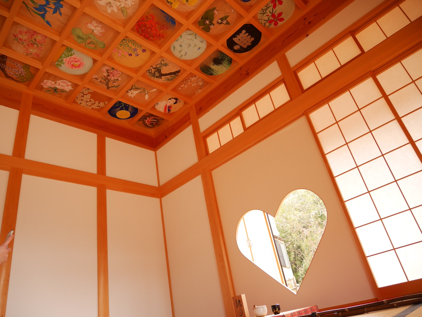 猪目窓の印象も強いですが、それ以上に天井画がすばらしかったです。