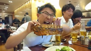巨大な骨付き肉に豪快にかぶりつきましたよ☆