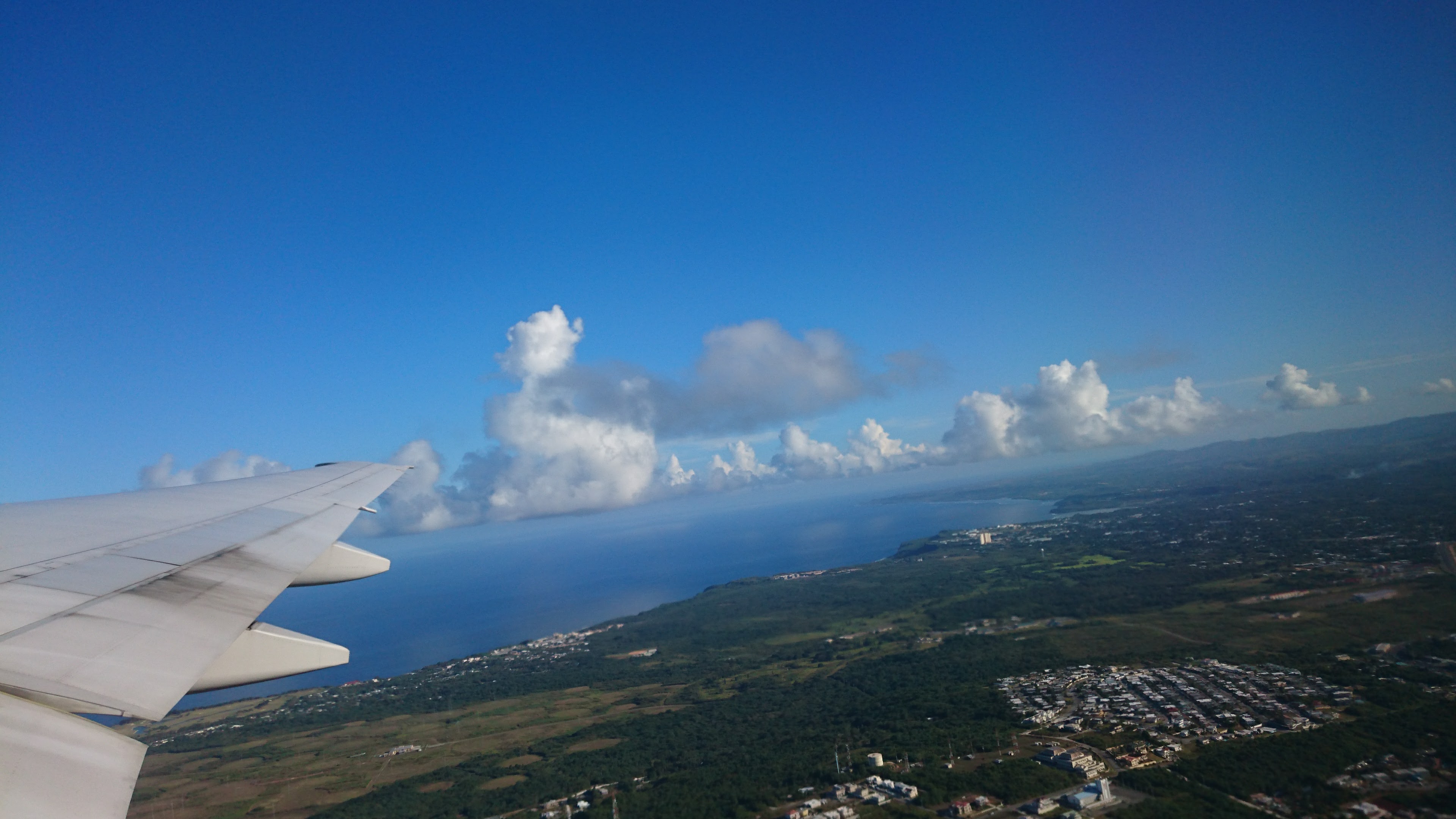 飛行機の中から見る青い海が、とても名残惜しいです・・・