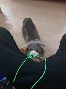 せっかく購入したヘッドセットの配線を食いちぎろうとする困ったちゃんも元気です!