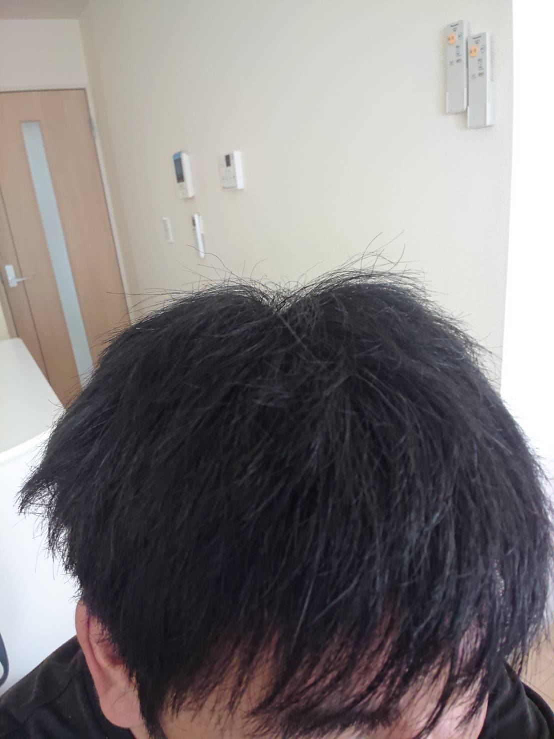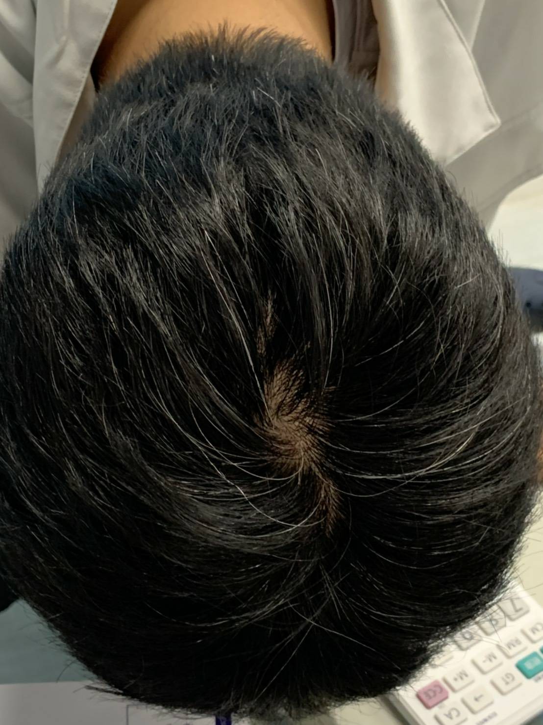 『てっぺん白髪残ってますよーw』