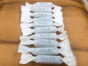 No.5ラズベリー、No.6オレンジピール、No.7アーモンド、