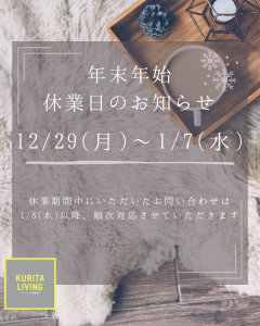 【年末年始休業のお知らせ】