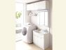 洗面化粧台の上ではなく、洗濯機の上につけて欲しいとのご要望を頂くことがあります。下地が入っていないとお付けできませんので、現調が必要になります。また、メーカーによりサイズも色々ありますので、ご相談ください。
