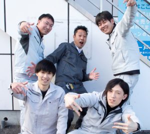 ①営業部スタッフ 9:00~18:30 ②工事部スタッフ 8:30~18:00 ③コーティングスタッフ 8:30~18:00 |