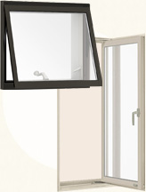 外側に開いていく窓になります。横向きの場合ガラス部分がひさしのようになり、雨の吹き込みを防ぎ。縦向きの場合は角度によって、風を調整することが可能です。防犯対策として、一定の角度以上に開かないようにストッパーが付いているタイプもあります。