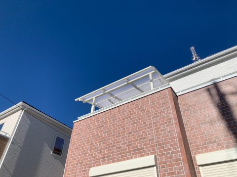 2階の広いベランダ部分を覆うようにテラス屋根
