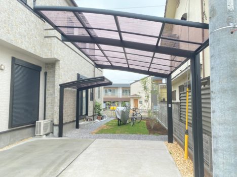 駐車スペースと駐輪スペースにカーポートとサイ