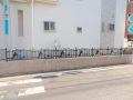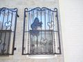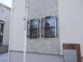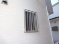 うフェンスと、建物正面にある上下窓の面格子