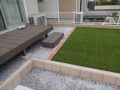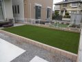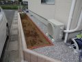 ウッドデッキ下に敷いた砂利との境目にインタ