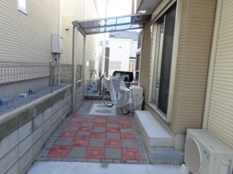 元のお庭は砂利敷きでしたので自転車が倒れてし