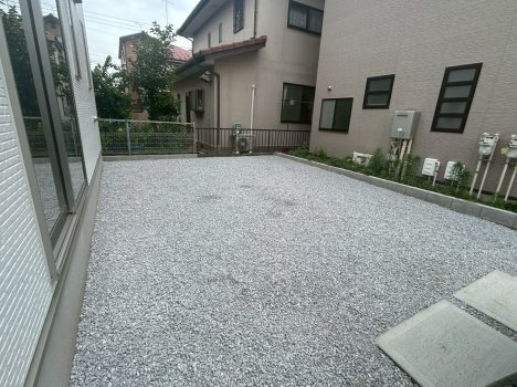 お庭の土の部分に「砂利敷+防草シート」をご依