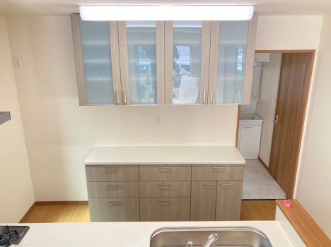 今回ご依頼いただけた食器棚は、グレー系の木目