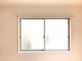 幅の狭い縦長な窓にはロールスクリーンがオス