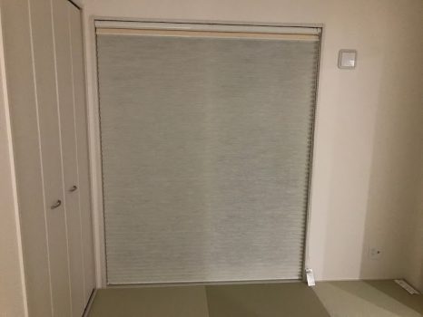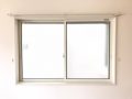 レース生地と厚生地を上下に分けられ、窓枠内に