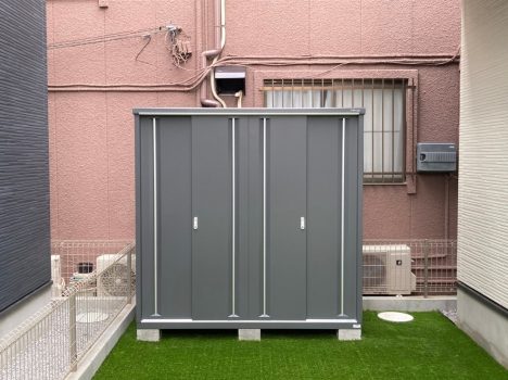 今回施工した内容は、物置、人工芝、屋外物干し