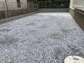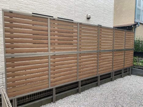 面格子、プリーツスクリーン、LED照明、砂利敷