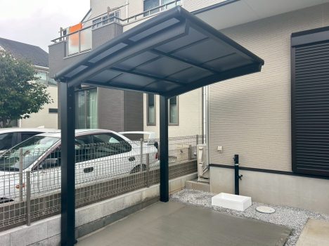 ート、サイクルポート、立水栓、砂利敷きを施工