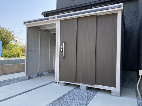 今回は、ヨド物置の駐輪スペース併設物置を施