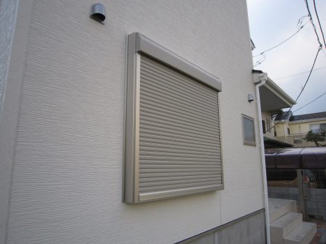 通りに面した腰高窓に、シャッターが元から付