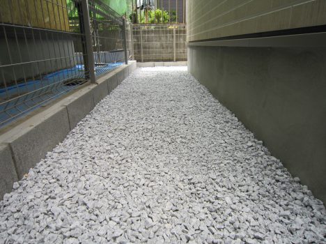 お家の周りに防草シートと砂利を敷く事によ
