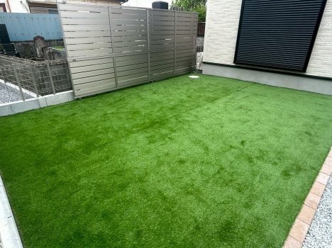 ィルム、立水栓、人工芝、目隠しフェンスを施工
