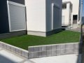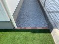お庭部分を人工芝にして、建物の裏側や横の通路