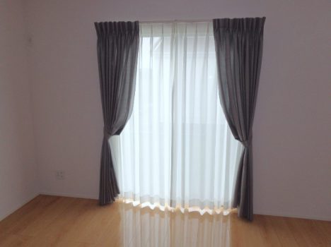 ーテンシェード、掃出し窓にはカーテンを統一し