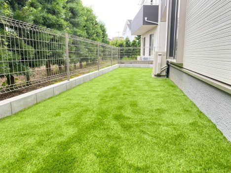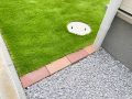 今回施工した内容は、人工芝、砂利止め、砂利敷