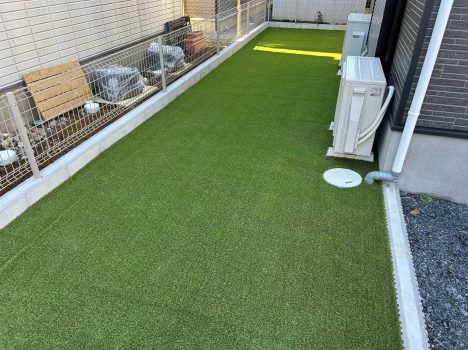 人工芝は天然芝の庭と違い、日々のお手入れがほ