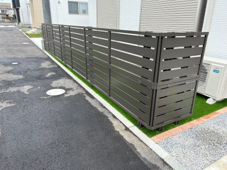 共有道路側は目隠しを兼ねてフェンスをL字型