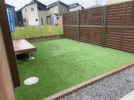 、人工芝、目隠しフェンス、ウッドデッキ、壁付