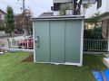 シャッター、物置、立水栓を施工致しました。