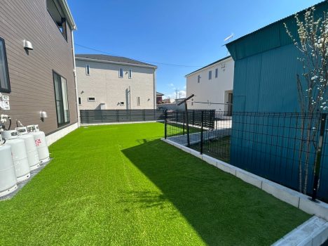人工芝+防草シート、フェンスを施工しました。